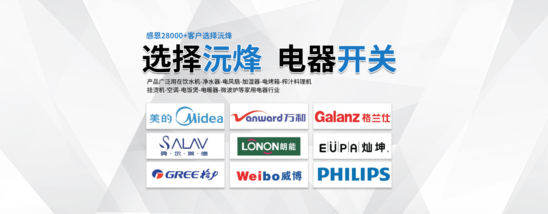 主要生產(chǎn)浮球開關(guān)、接近開關(guān)、琴鍵開關(guān)、旋轉(zhuǎn)開關(guān)、微動開關(guān)、船型開關(guān)、拉線開關(guān)以及接線座等系列產(chǎn)品。 -